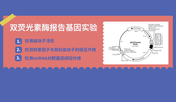 雙熒光素酶報(bào)告基因分析通常以螢火蟲(chóng)熒光素酶為報(bào)告基因,以海腎熒光素酶為內(nèi)參基因。所構(gòu)成的報(bào)告系統(tǒng)具有靈敏度高、動(dòng)態(tài)范圍廣、應(yīng)用靈活等優(yōu)勢(shì),廣泛應(yīng)用于基因調(diào)控、非編碼RNA靶向互作等研究領(lǐng)域。