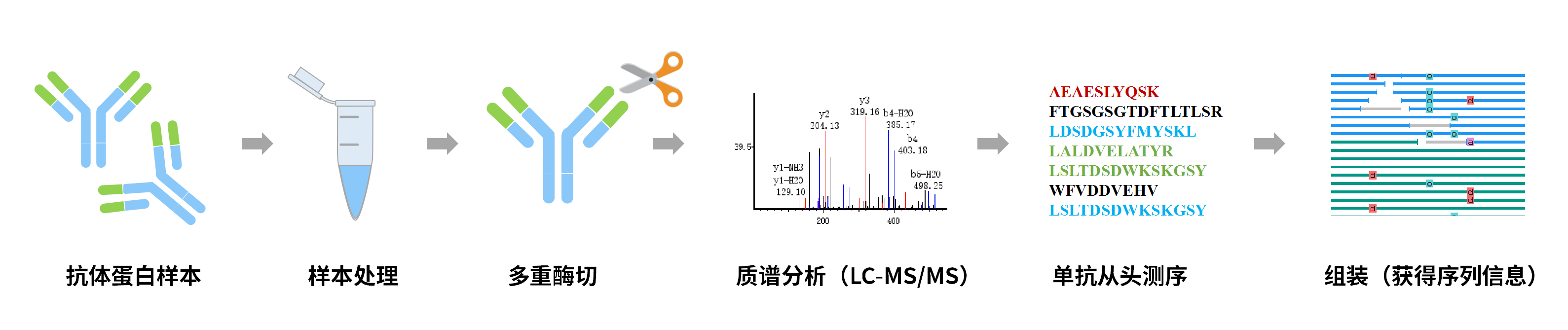 單克隆抗體分子在藥物研發(fā)、診斷試劑開發(fā)中扮演了關(guān)鍵的角色??贵w分子的一級結(jié)構(gòu),特別是其CDR區(qū)域的氨基酸序列是發(fā)揮其生物學功能的核心,對其完整序列準確快速的分析具有重要的意義。